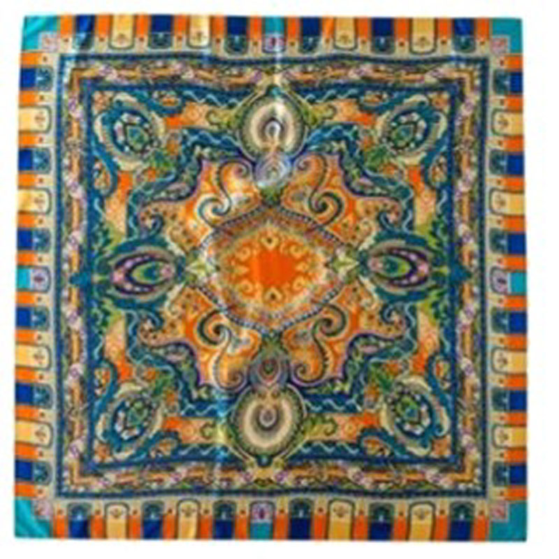 相比市面上一般丝巾反面泛白,这款丝巾正反面十分相似,颜色鲜艳、色彩浓郁、着色渗透度较好,有较强的视觉冲击力,给人较高的美观体验。